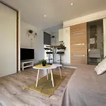 Staying at the 20 m^2 Studio Proche De La Plage De L'Almanarre, guests can relax on a terrace nearly a 25-minute walk from Route de l'Almanarre. At the apartment, Wi-Fi and a private parking garage are also provided.